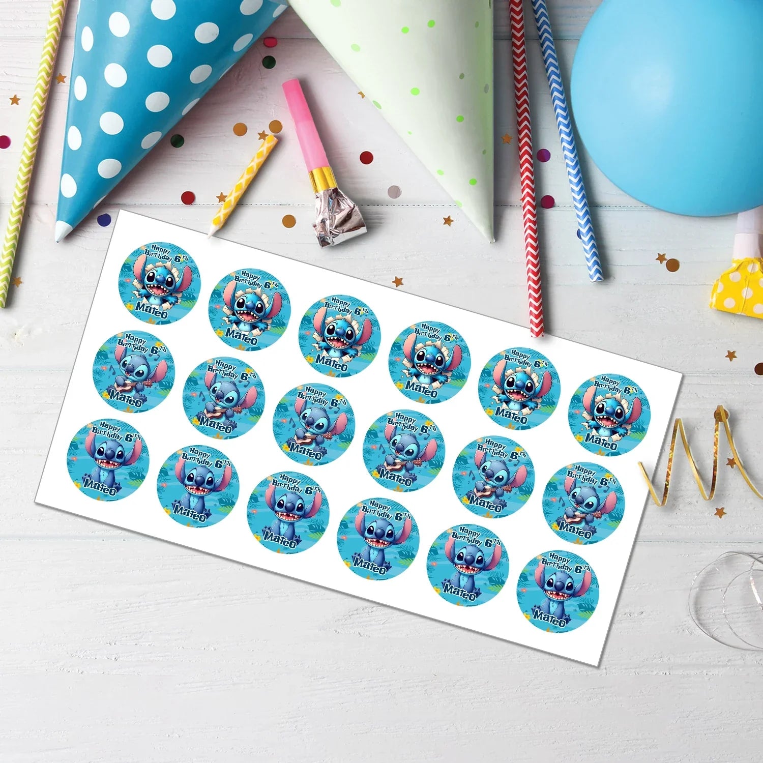 Take your cupcakes to the next level with personalized Stitch toppers. Customizable with name and age, these vibrant toppers are perfect for birthdays and events. Great for decorating cupcakes or small desserts.